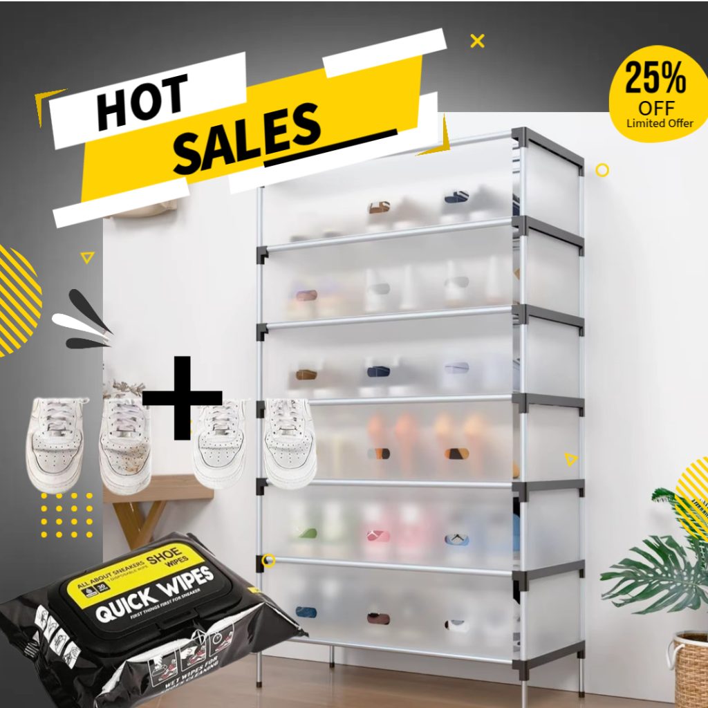 Say goodbye to cluttered hallways and messy rooms! The 7-Step Layer Shoe Rack is the perfect storage solution for every home. Designed to hold multiple pairs of shoes in a compact space, this rack combines durability, elegance, and convenience — plus you get a FREE pack of premium shoe wipes with every order!